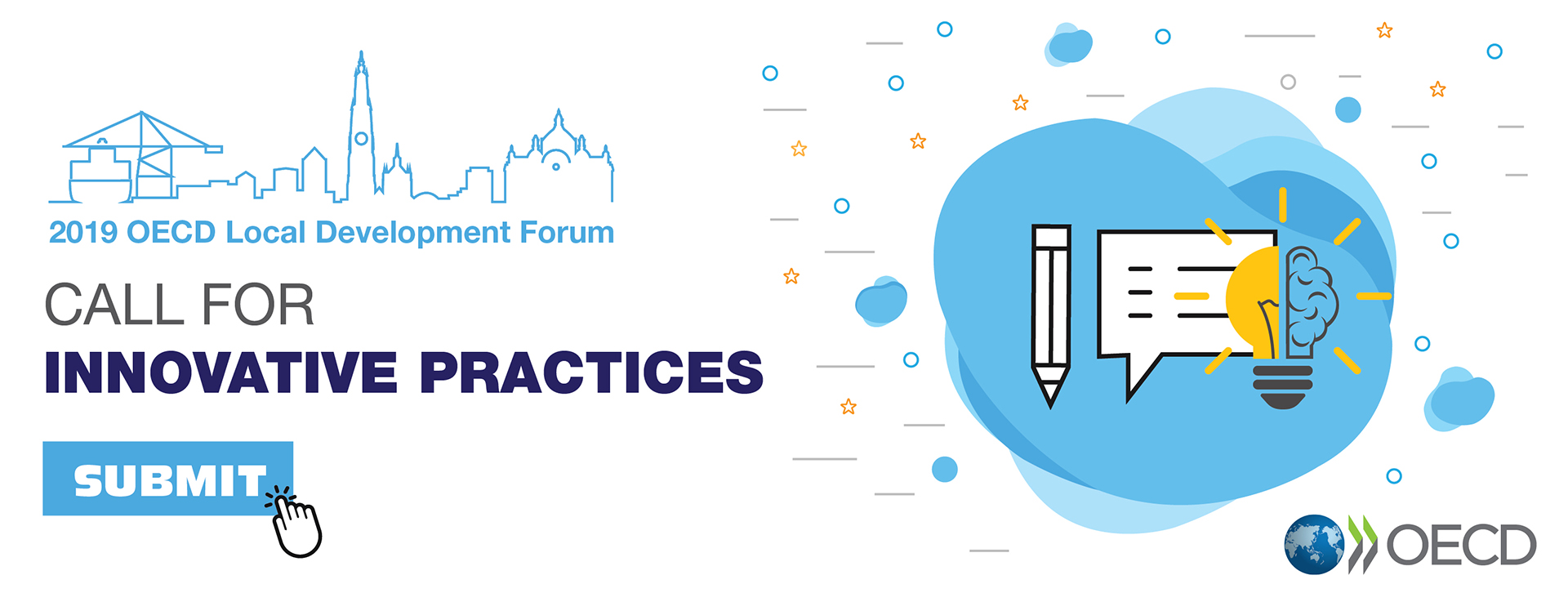 La OCDE también está buscando ejemplos de programas de empleo, de capacitacion, de innovación social, cultural / industrias creativas y de emprendimiento que se presenten en el trabajo de la OCDE que destaque las buenas prácticas internacionales.